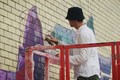 Case Maclaim painting a mural for Stadt Wand Kunst 2019