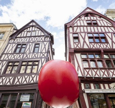 Measuring 4.6 metres in diameter and weighing 120 kilos, the red ball can be seen in Rouen city centre for a 6-day performance...